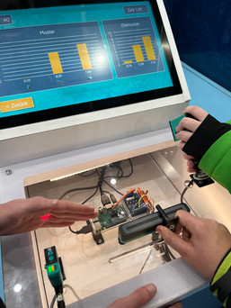 Gemeinsam programmierten sie einen kollaborativen Roboter oder die Lichtanlage im Truck,