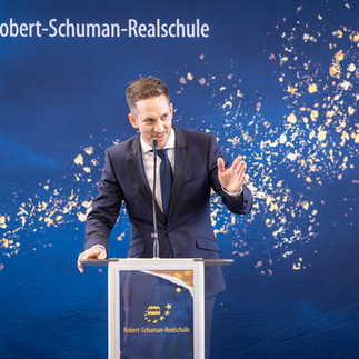 Schülerinnen und Schüler, Kolleginnen und Kollegen, Eltern sowie Vertreter der Stadt feierten gemeinsam seinen Start. Mit Musik, kurzen Theaterstücken und Beiträgen verschiedener Klassen wurde schnell klar: Die Schulgemeinschaft steht voll hinter ihrem neuen Schulleiter. Durch das Programm führte Robin Immisch, seit September zweiter Konrektor an der Robert-Schuman-Realschule.